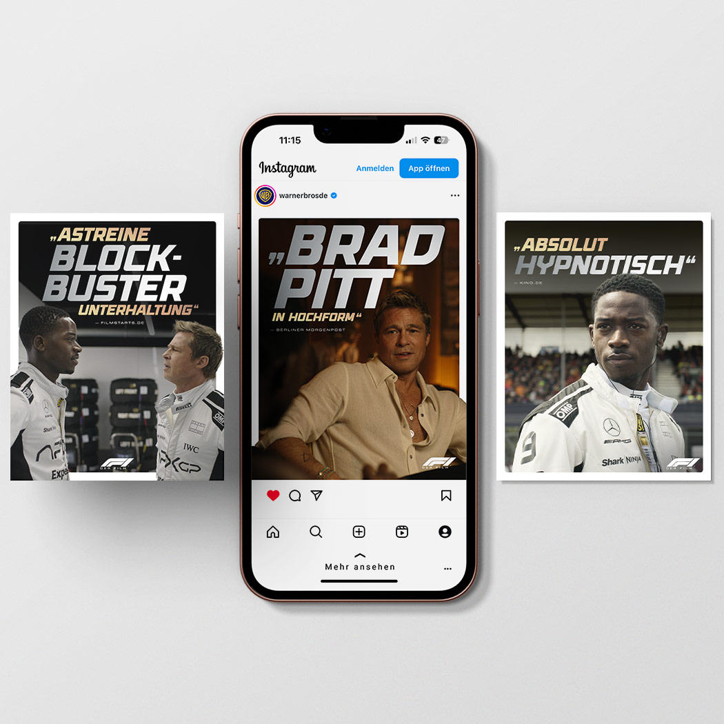 Das rasante, actiongeladene Filmspektakel F1, inszeniert von „Top Gun: Maverick“-Regisseur Joseph Kosinski und mit Brad Pitt in der Hauptrolle, ist die bislang teuerste Apple Original Produktion. Unsere Aufgabe war es, eine aufregende Kampagne ins Rollen zu bringen, die dem Titel die Pole Position in den Kino-Charts sicherte.